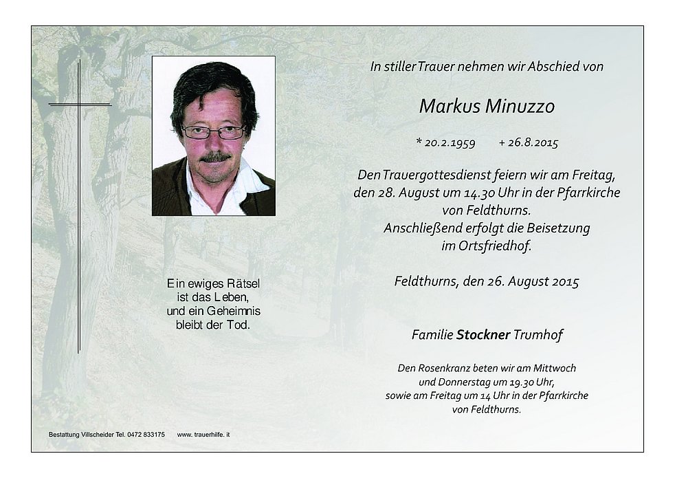 Den Trauergottesdienst feiern wir am Freitag, den 28. August um 14.30 Uhr in der Pfarrkirche
