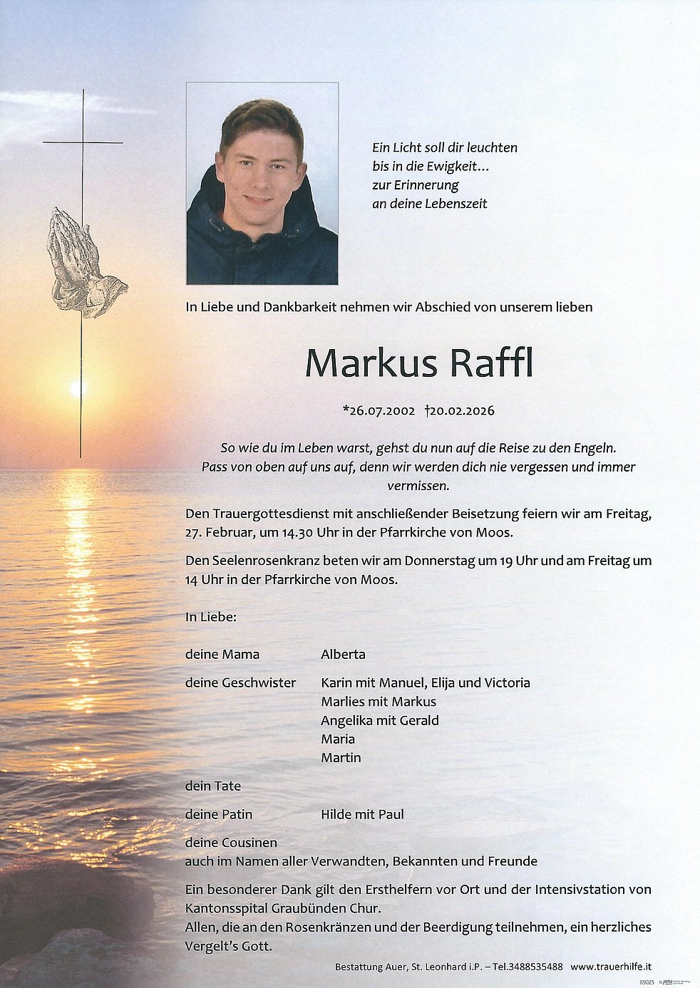 Allen, die an den Rosenkränzen und der Beerdigung teilnehmen, ein herzliches Vergelt’s Gott.
