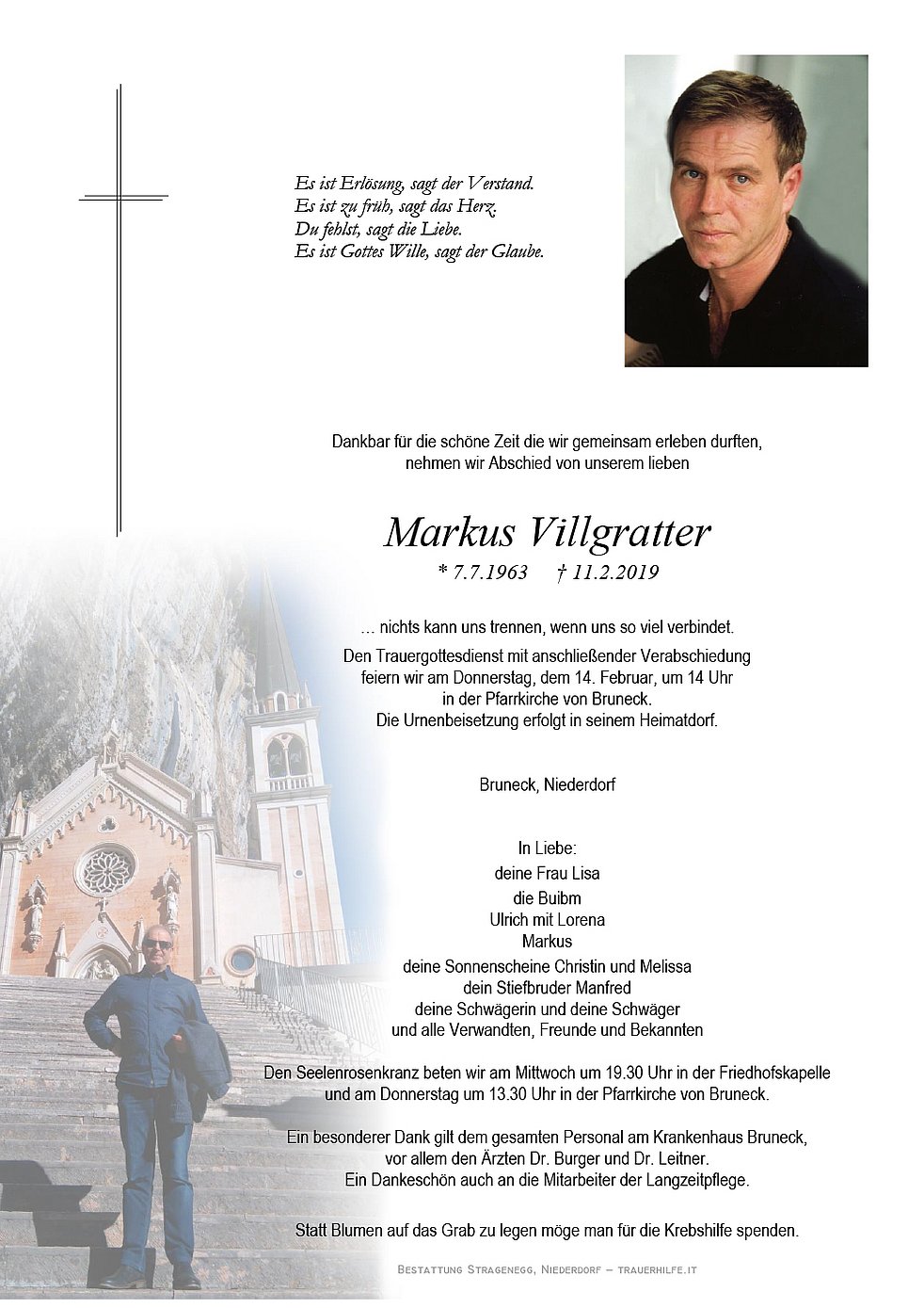 Den Trauergottesdienst mit anschließender Verabschiedung feiern wir am Donnerstag, dem 14. Februar, um 14 Uhr in der Pfarrkirche von Bruneck.