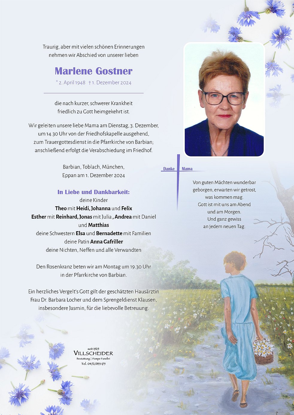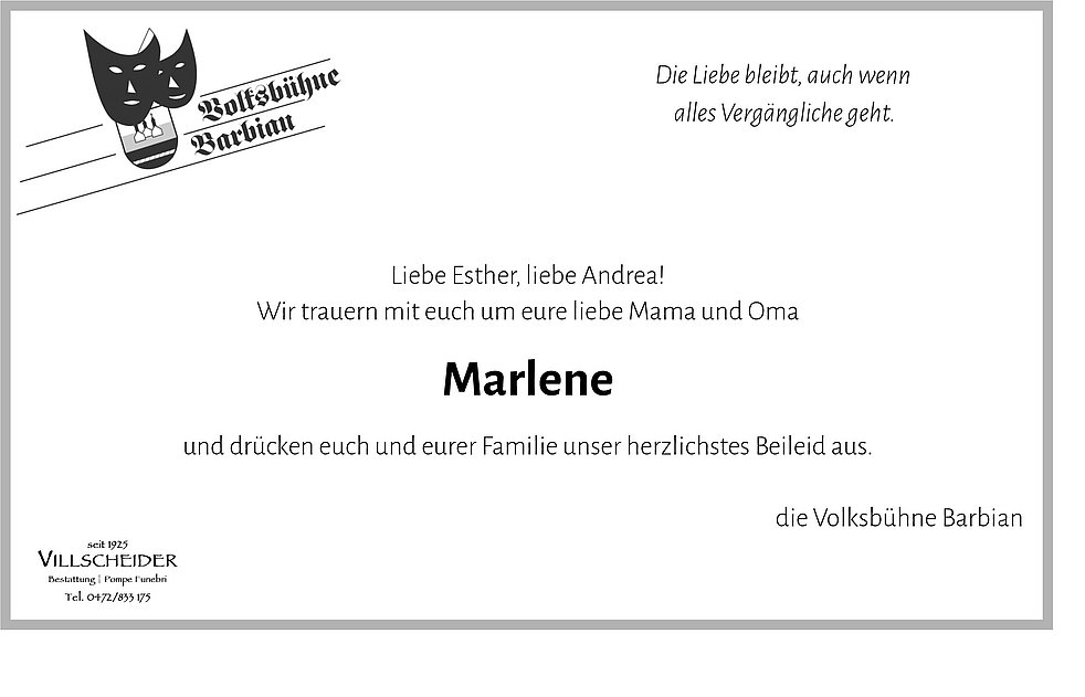Liebe Marlene, gerne erinnere ich mich an unsere Gespräche zurück. Du hattest stets ein offenes Ohr, Deine Tür war immer offen, und Du hattest immer einen Rat und positive Worte.