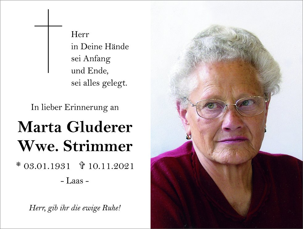 Am Dienstag, 16. November, um 13.40 Uhr beten wir den Rosenkranz; um 14 Uhr feiern wir den Trauergottesdienst in der Pfarrkirche von Laas.