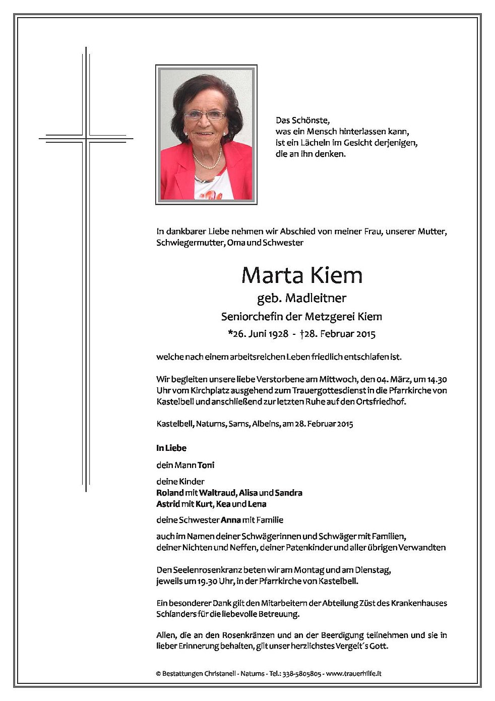 Allen, die an den Rosenkränzen und an der Beerdigung teilnehmen und sie in lieber Erinnerung behalten, gilt unser herzlichstes Vergelt´s Gott.