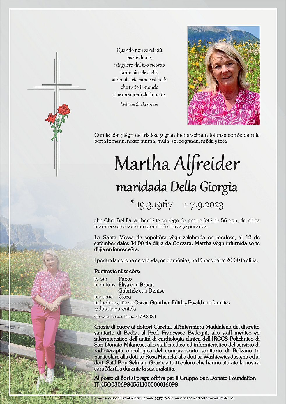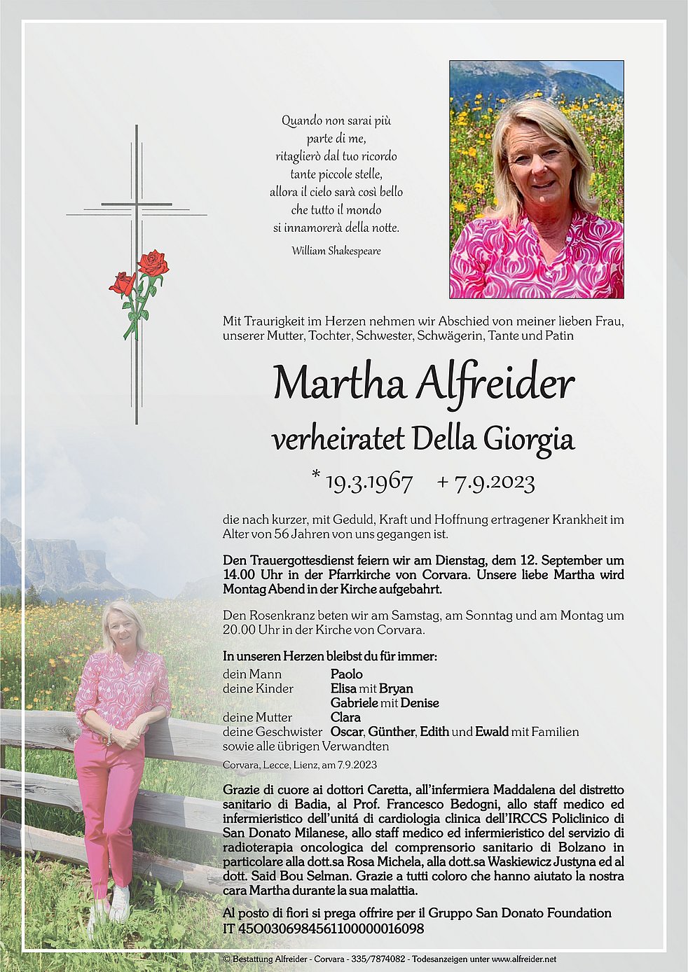 Liebe Martha, deine Herzlichkeit und deine Fröhlichkeit werden mir fehlen. Ruhe sanft, oamol seg ma ins wieder. Der trauernden Familie meine aufrichtige Anteilnahme und viel Kraft. Mit stillem Gruß Irmgard