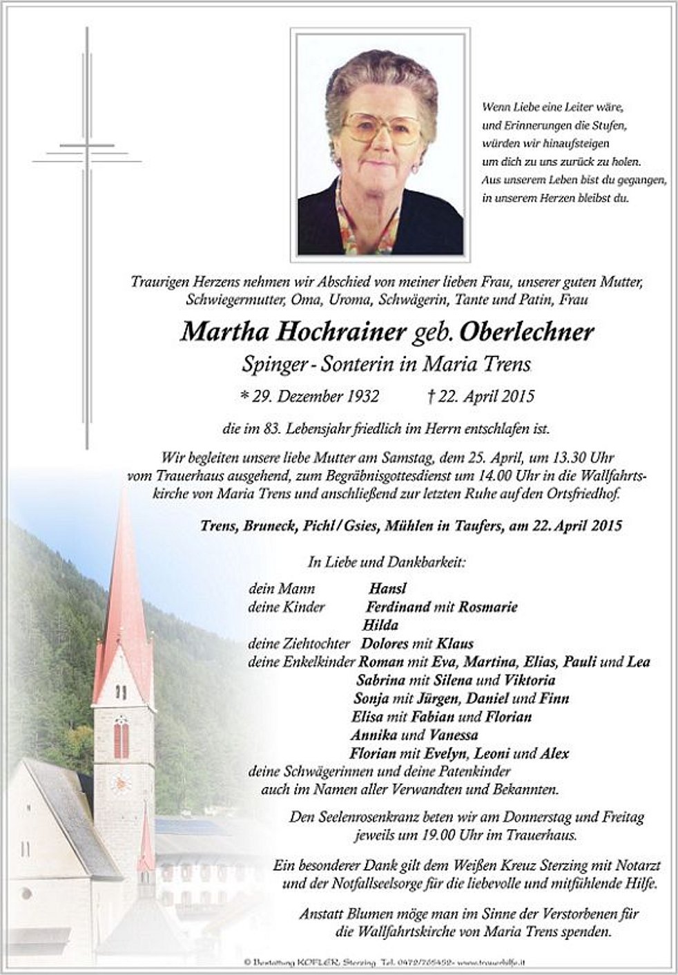 Wallfahrtskirche von Maria Trens und anschließend zur letzten Ruhe auf den Ortsfriedhof.