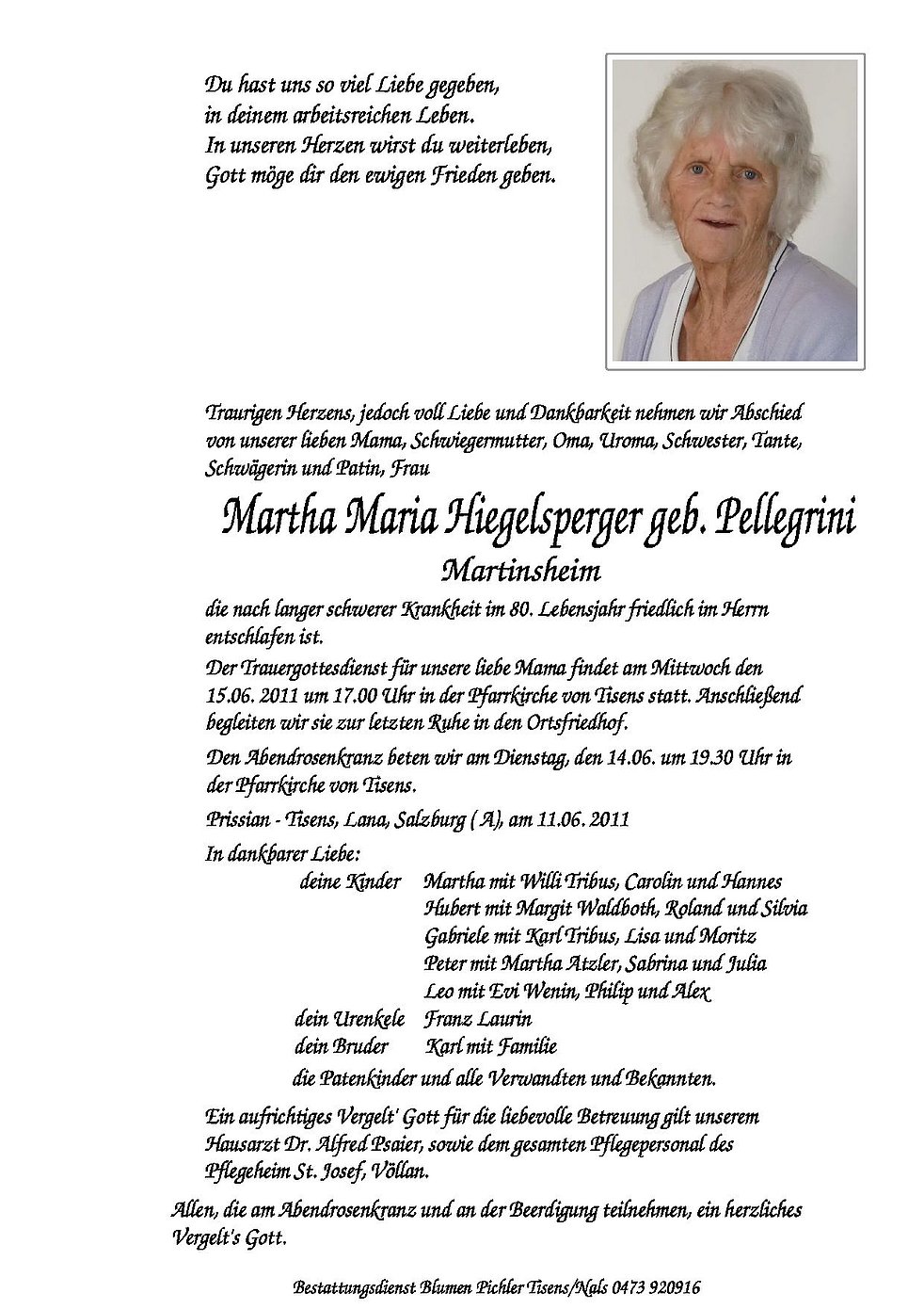 Martha Maria Hiegelsperger geb. Pellegrini