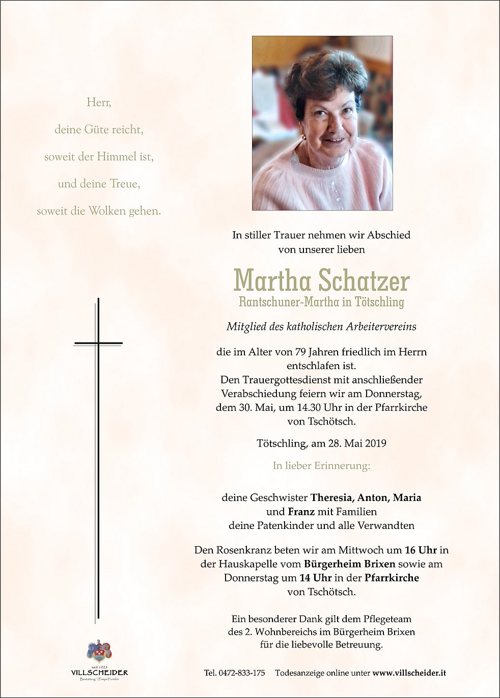 Trauerfeier: 30.05. - 14:30 Uhr Tschötsch