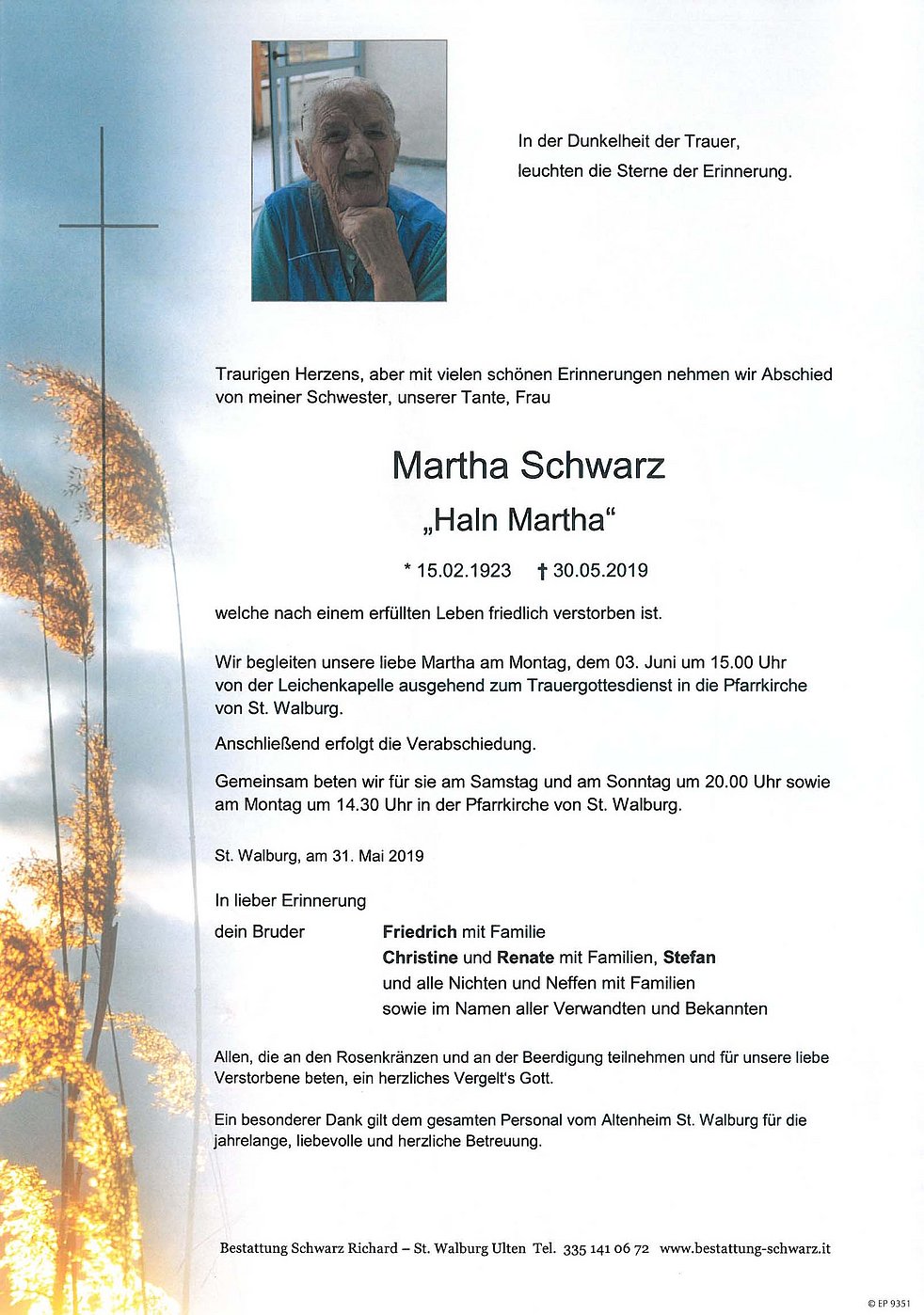 Trauerfeier: 03.06. - 15:00 Uhr Pfarrkirche St. Walburg