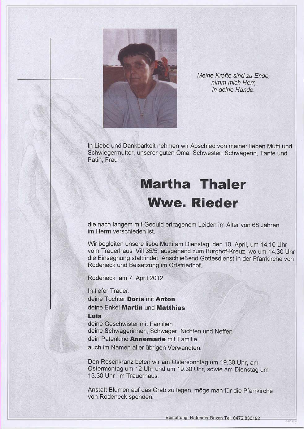 Martha Thaler Witwe Rieder