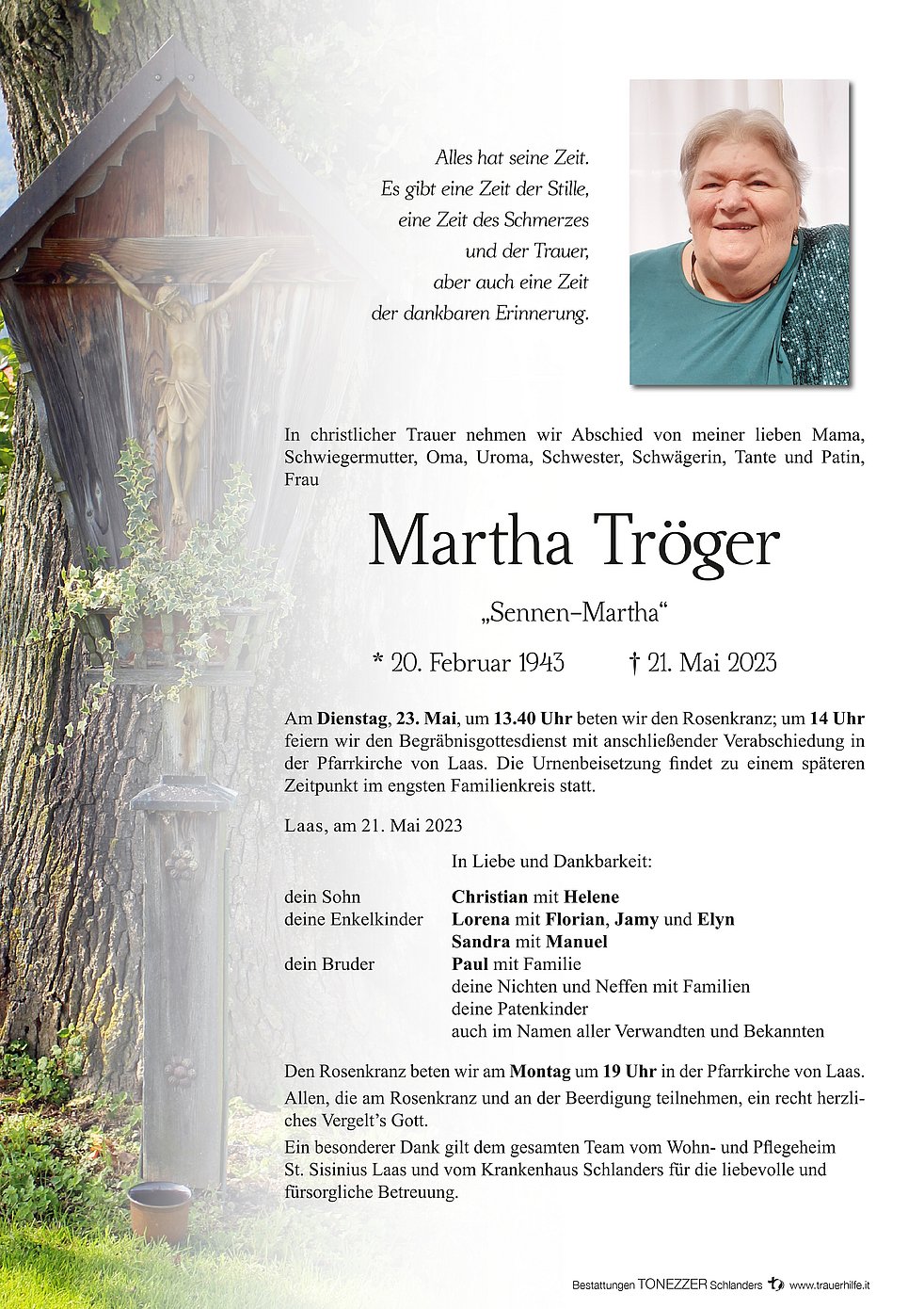 Am Dienstag, 23. Mai, um 13.40 Uhr beten wir den Rosenkranz; um 14 Uhr feiern wir den Begräbnisgottesdienst mit anschließender Verabschiedung in der Pfarrkirche von Laas.