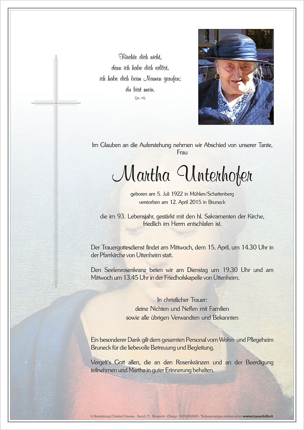 Vergelt‘s Gott allen, die an den Rosenkränzen und an der Beerdigung teilnehmen und Martha in guter Erinnerung behalten.
