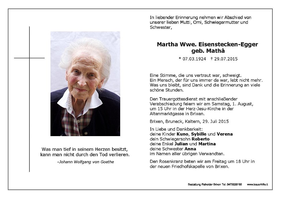 5 des Bürgerheimes Brixen, das sich um unsere Mutti so liebevoll gekümmert hat.