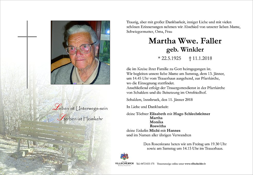 Wir begleiten unsere liebe Mame am Samstag, dem 13. Jänner,