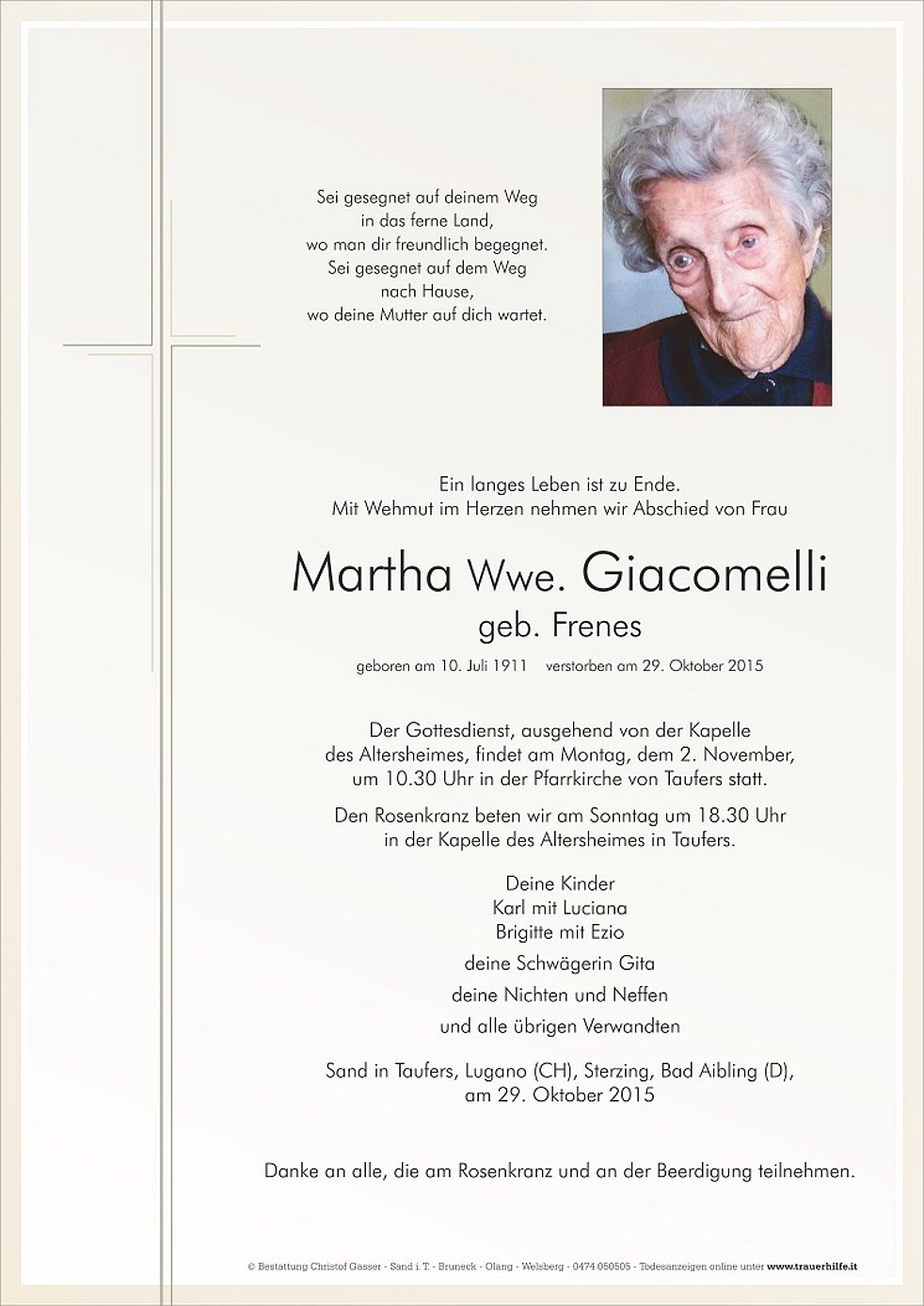 Martha, wir werden deine einzigartige Art und deinen Humor bis zum Schluss deines Weges nie vergessen. Du bleibst in unseren Herzen, du hast unsere Arbeitstage mit einem Lächeln beschenkt und dafür danken wir dir Martha. Nun bist du bei deinem Mann Emil. RUHET IN FRIEDEN.