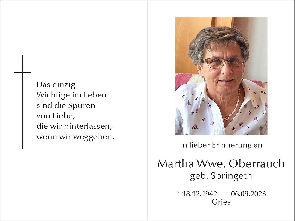 In Liebe und Dankbarkeit nehmen wir Abschied von unserer lieben Mama, Schwiegermutter, Oma, Schwester, Schwägerin, Tante und Patin, Frau