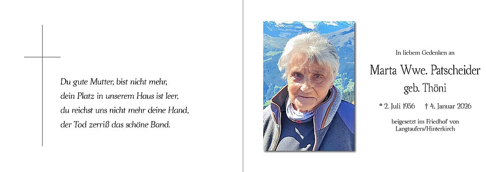 Marta Wwe. Patscheider geb. Thöni