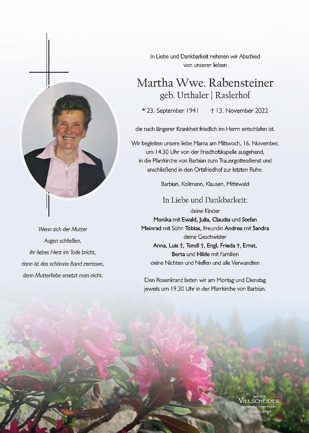 Begräbnisgottesdienst: 16.11. - 14:30 Uhr Barbian