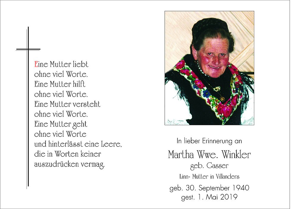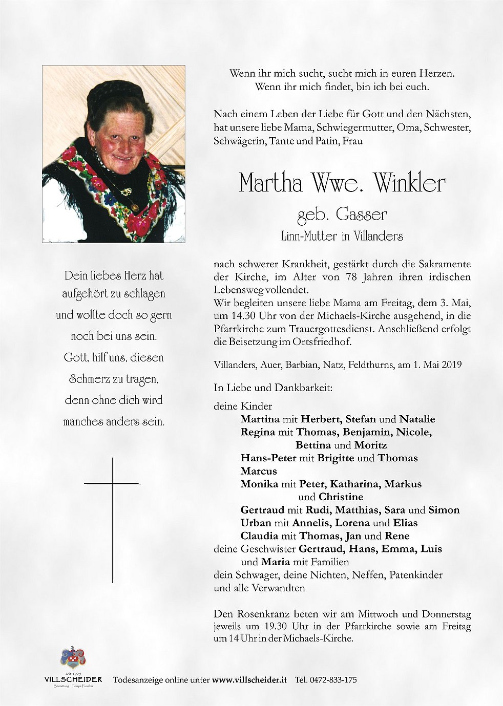 Begräbnisgottesdienst: 03.05. - 14:30 Uhr Villanders