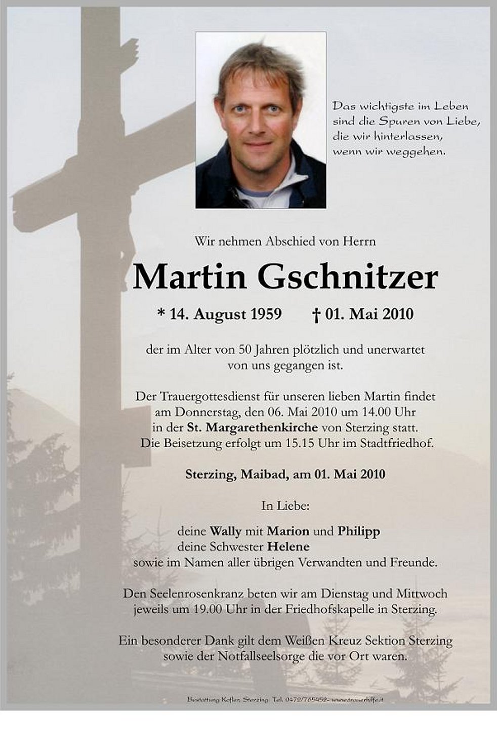 Der Trauergottesdienst für unseren lieben Martin findet am Donnerstag,