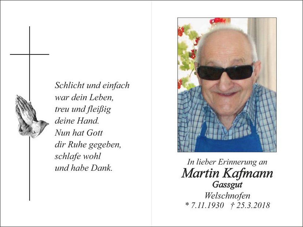 der nach einem christlich geprägten Leben friedlich entschlafen ist.