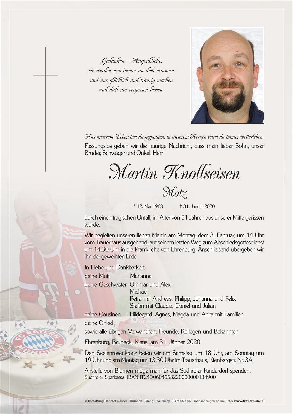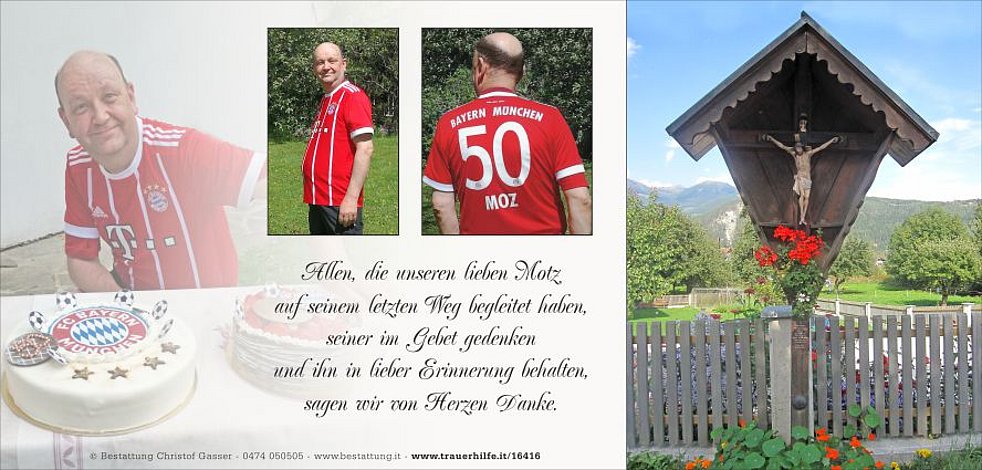 Anstelle von Blumen möge man für das Südtiroler Kinderdorf spenden.