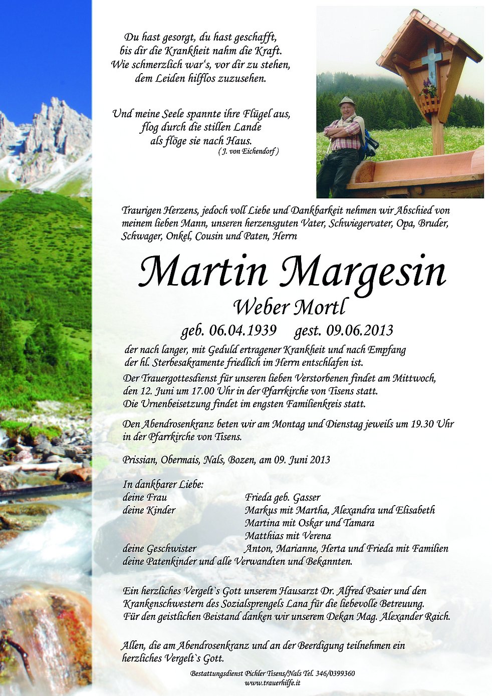 Der Trauergottesdienst für unseren lieben Verstorbenen findet am Mittwoch,