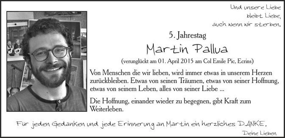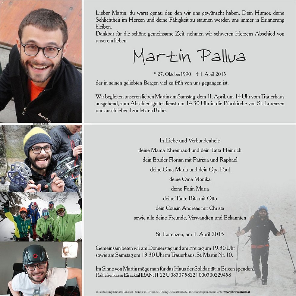 Im Sinne von Martin möge man für das Haus der Solidarität in Brixen spenden. Raiffeisenkasse Eisacktal IBAN: IT 22 U 08307 58221 000300229458