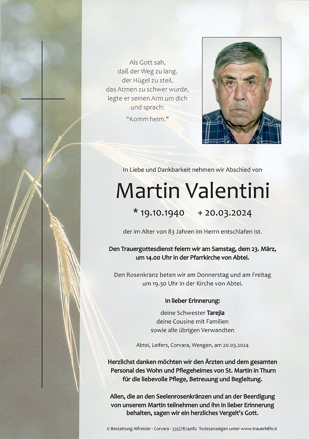Begräbnisgottesdienst: 23.03. - 14:00 Uhr Pfarrkirche Abtei