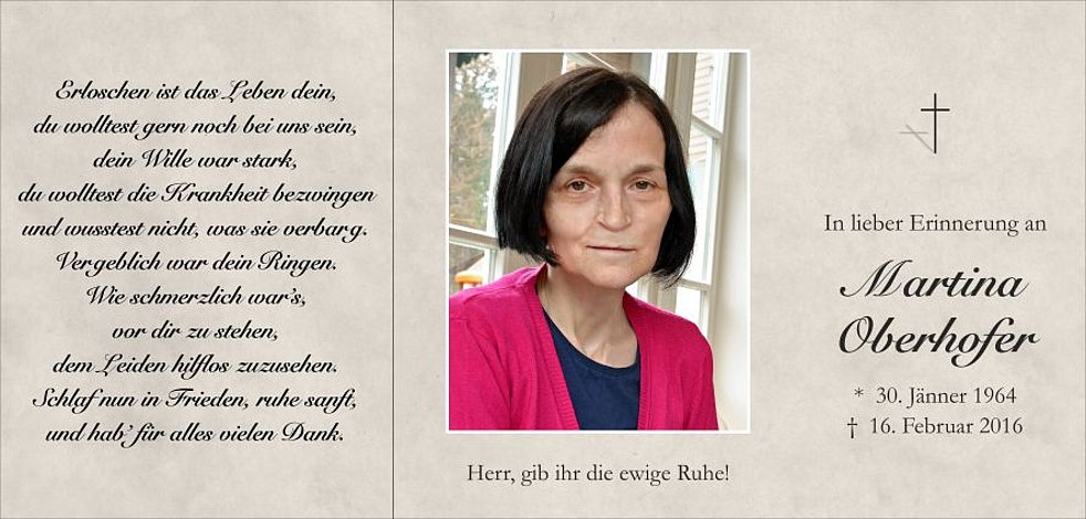 Ein besonderer Dank gilt allen, die unserer lieben Martina im Leben hilfreich zur Seite standen sowie sie betreut und begleitet haben.