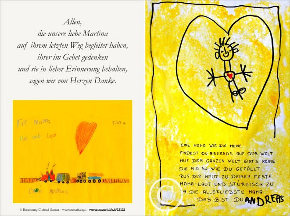 Besonders bedanken möchten wir uns bei Marianna und Richard für die liebevolle Begleitung und Unterstützung in der schweren Zeit.
