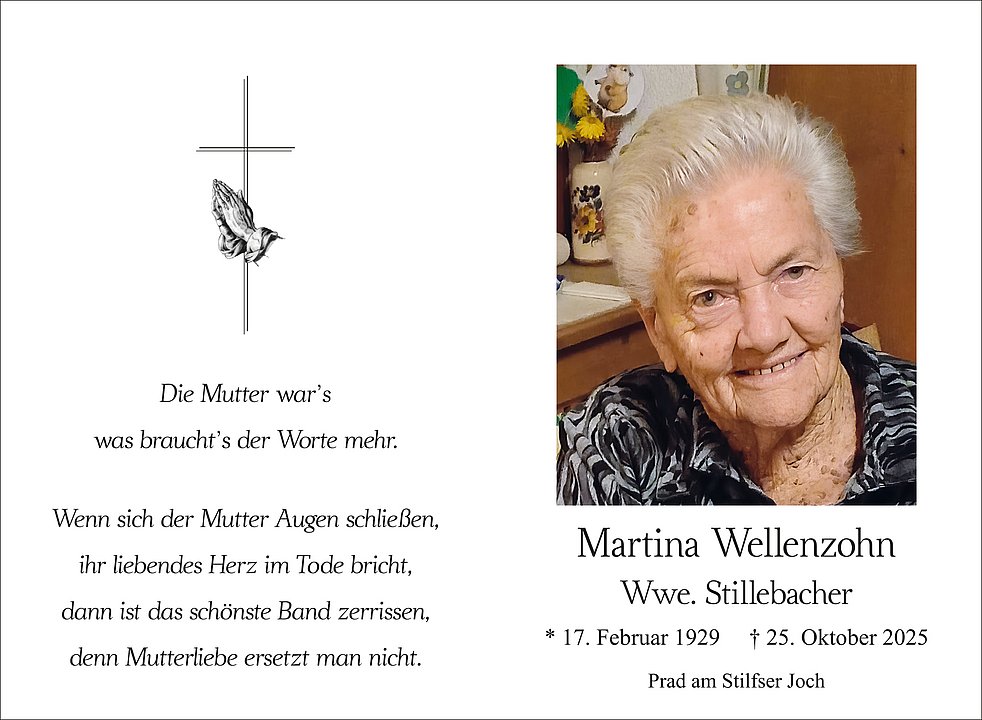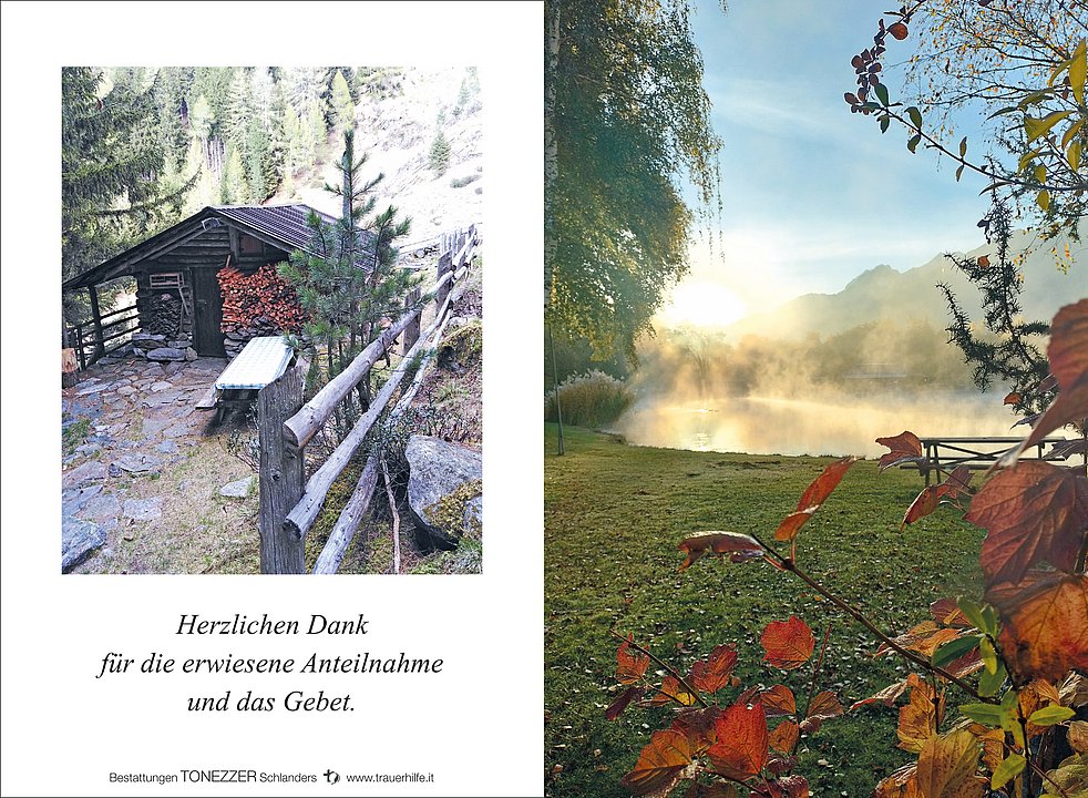 Der Termin für den Begräbnisgottesdienst mit der Urne in der Pfarrkirche von Prad wird zu einem späteren Zeitpunkt bekannt gegeben.
