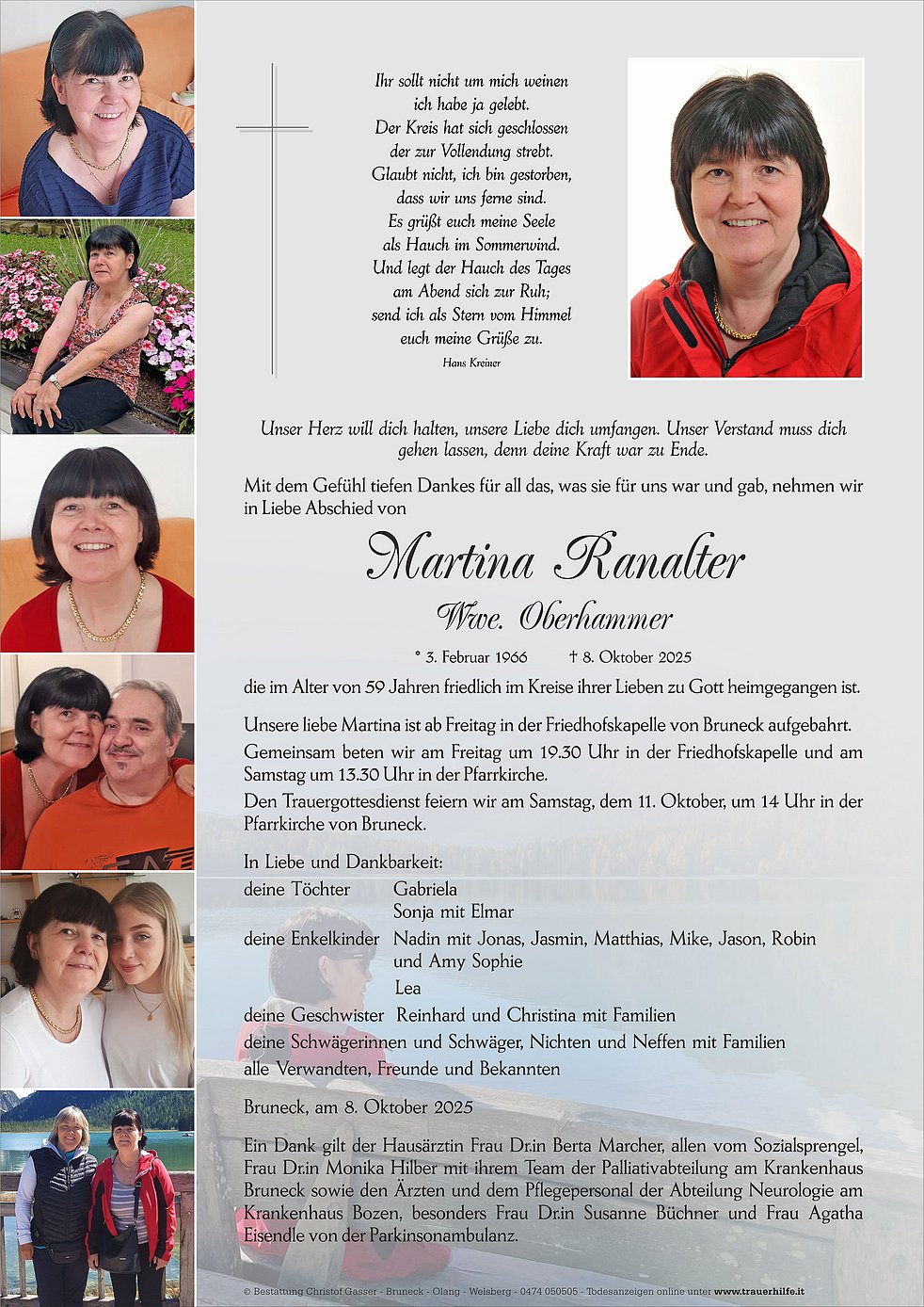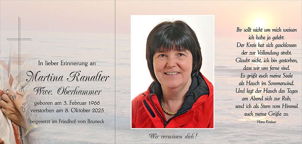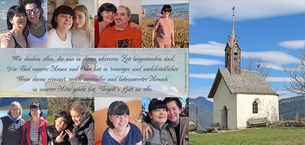 Unsere liebe Martina ist ab Freitag in der Friedhofskapelle von Bruneck aufgebahrt.