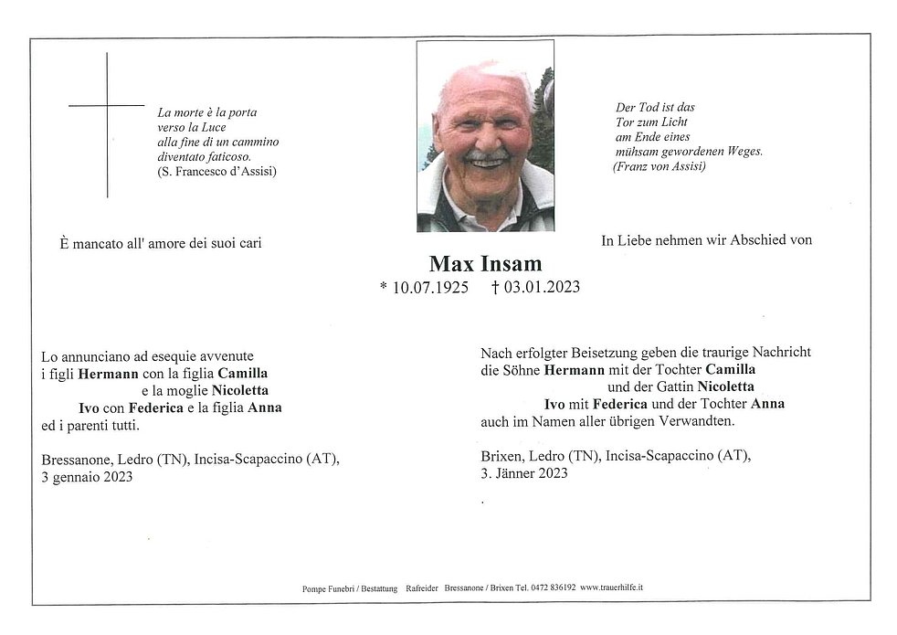 Nach erfolgter Beisetzung geben die traurige Nachricht