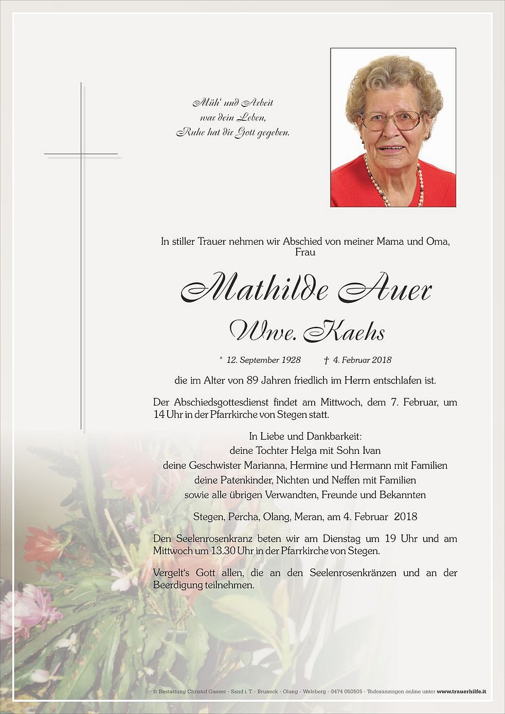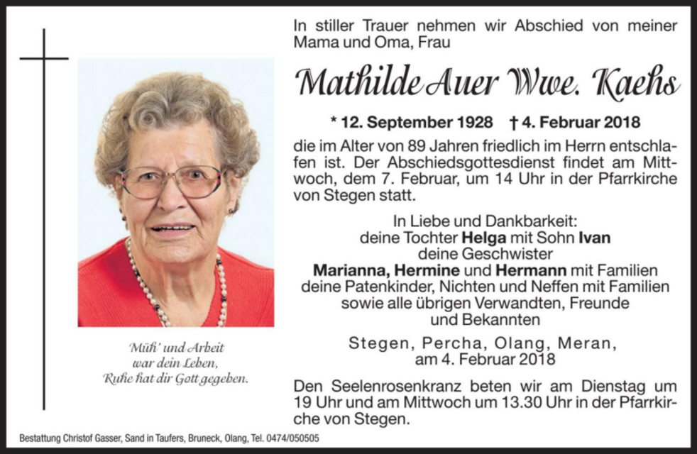 Vergelt‘s Gott allen, die an den Seelenrosenkränzen und an der Beerdigung teilnehmen.