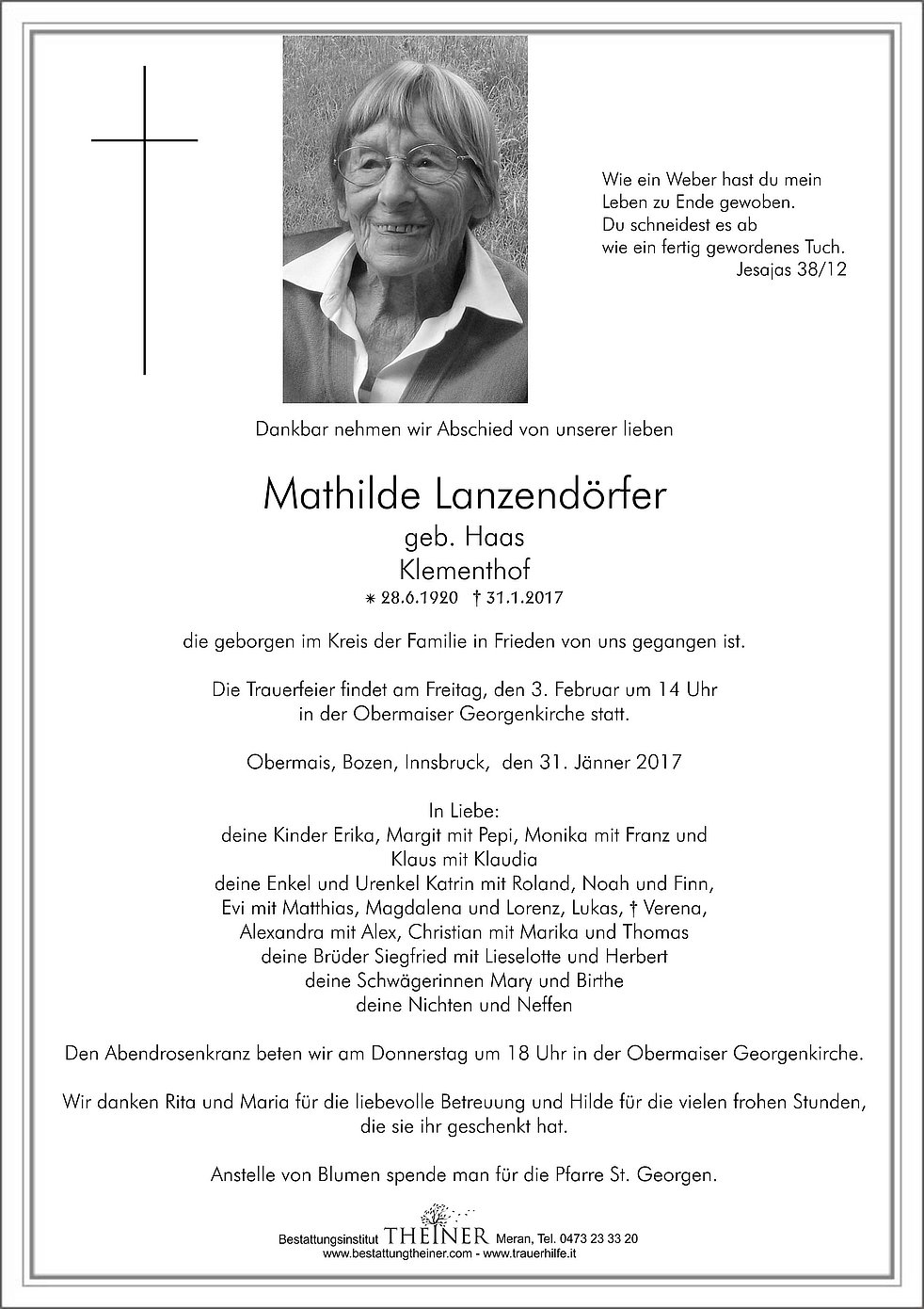 Obermais, Bozen, Innsbruck, den 31. Jänner 2017