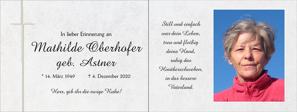 Wir danken allen, die Mathilde im Leben ihre Freundschaft schenkten und sie weiterhin in lieber Erinnerung behalten.