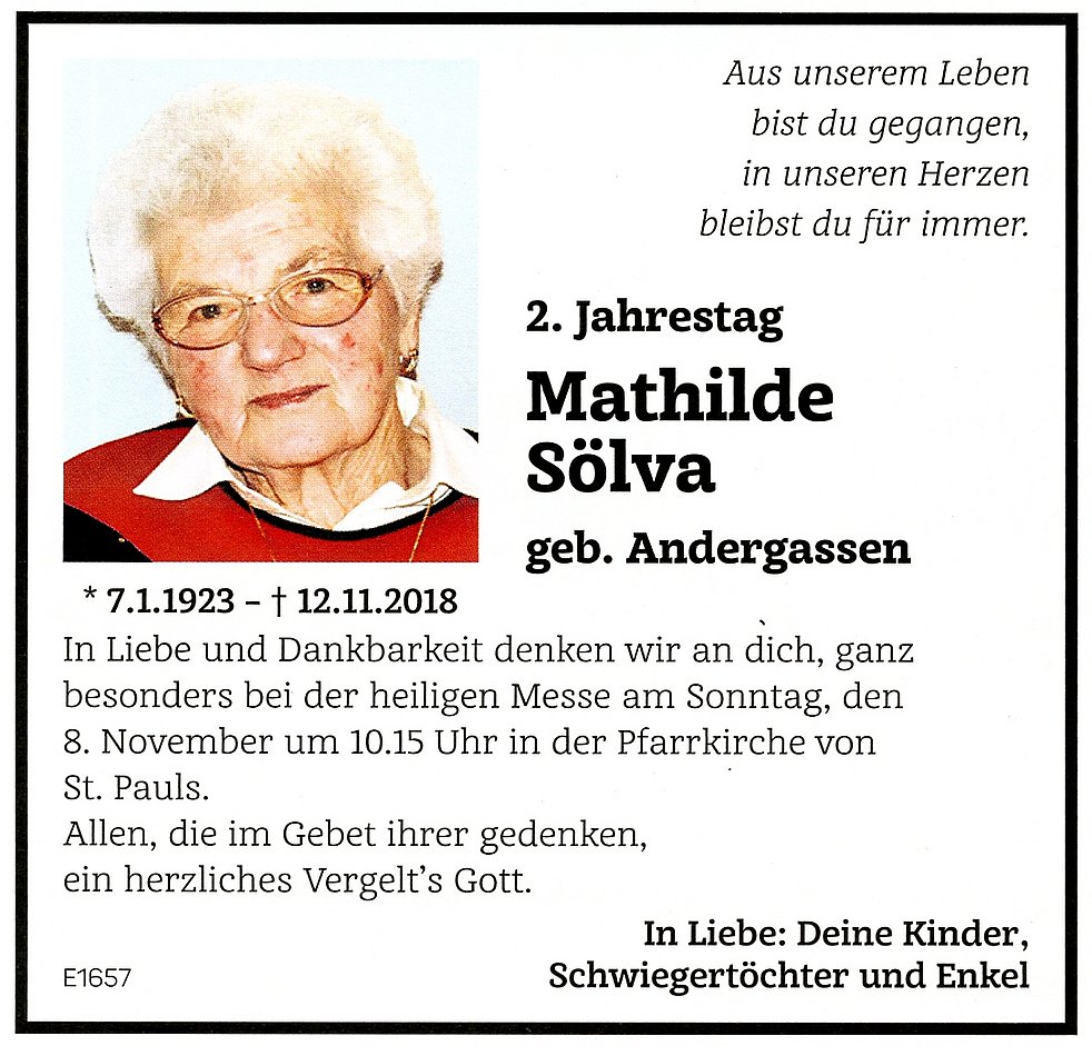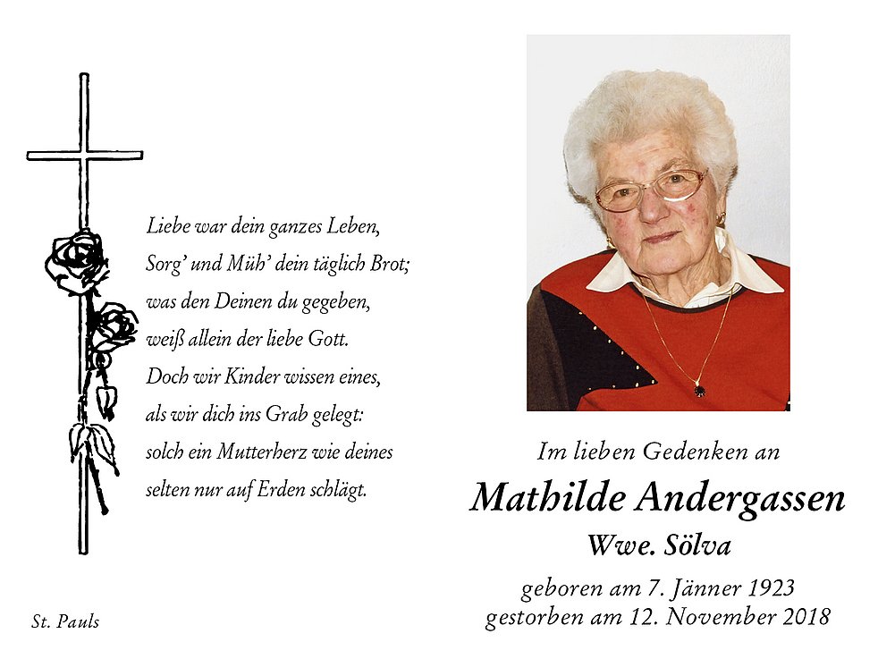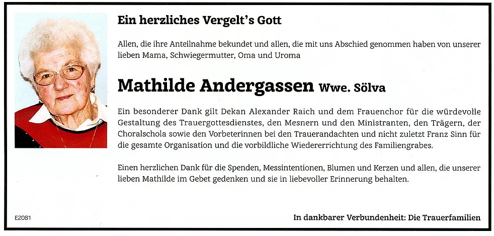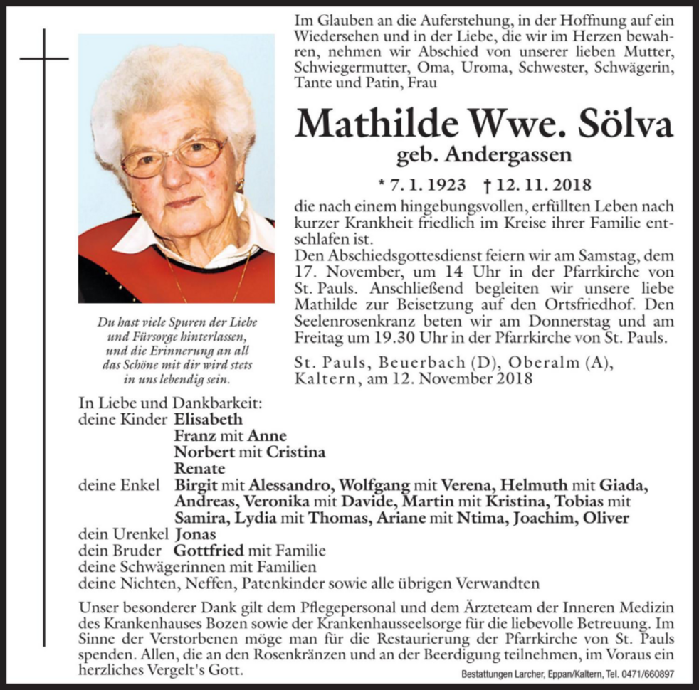 Mathilde Wwe. Sölva geb. Andergassen
