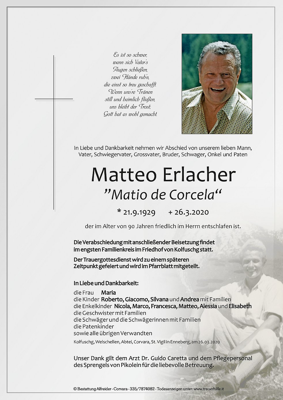 Die Verabschiedung mit anschließender Beisetzung findet im engsten Familienkreis im Friedhof von Kolfuschg statt.