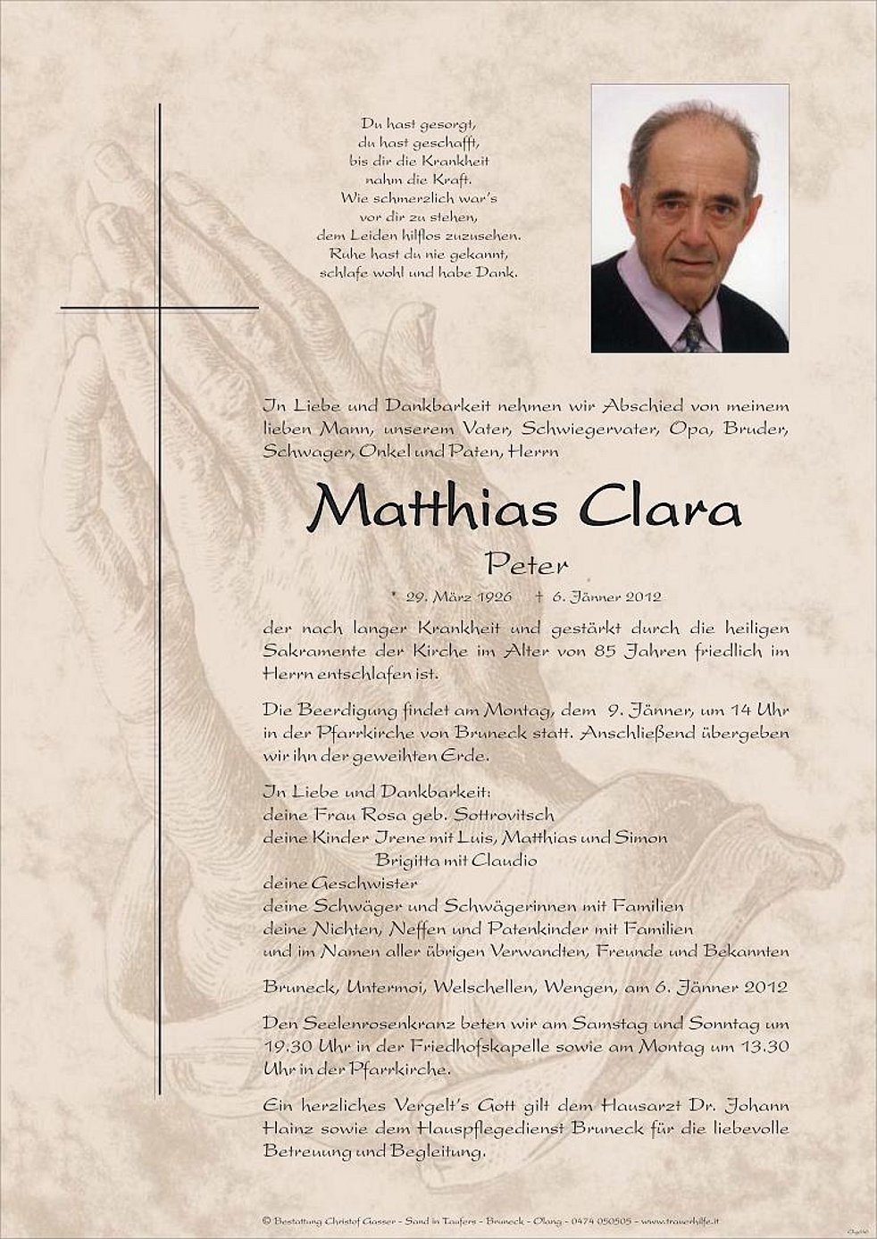 Ein herzliches Vergelt’s Gott gilt dem Hausarzt Dr. Johann Hainz sowie dem Hauspflegedienst Bruneck für die liebevolle Betreuung und Begleitung.