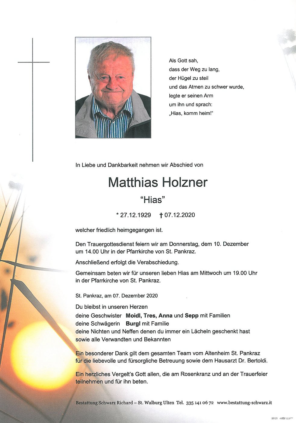 Ein herzliches Vergelt’s Gott allen, die am Rosenkranz und an der Trauerfeier teilnehmen und für ihn beten.