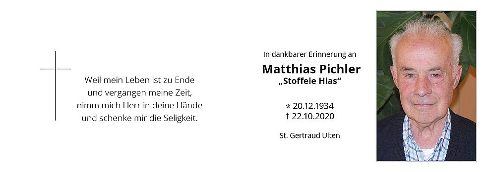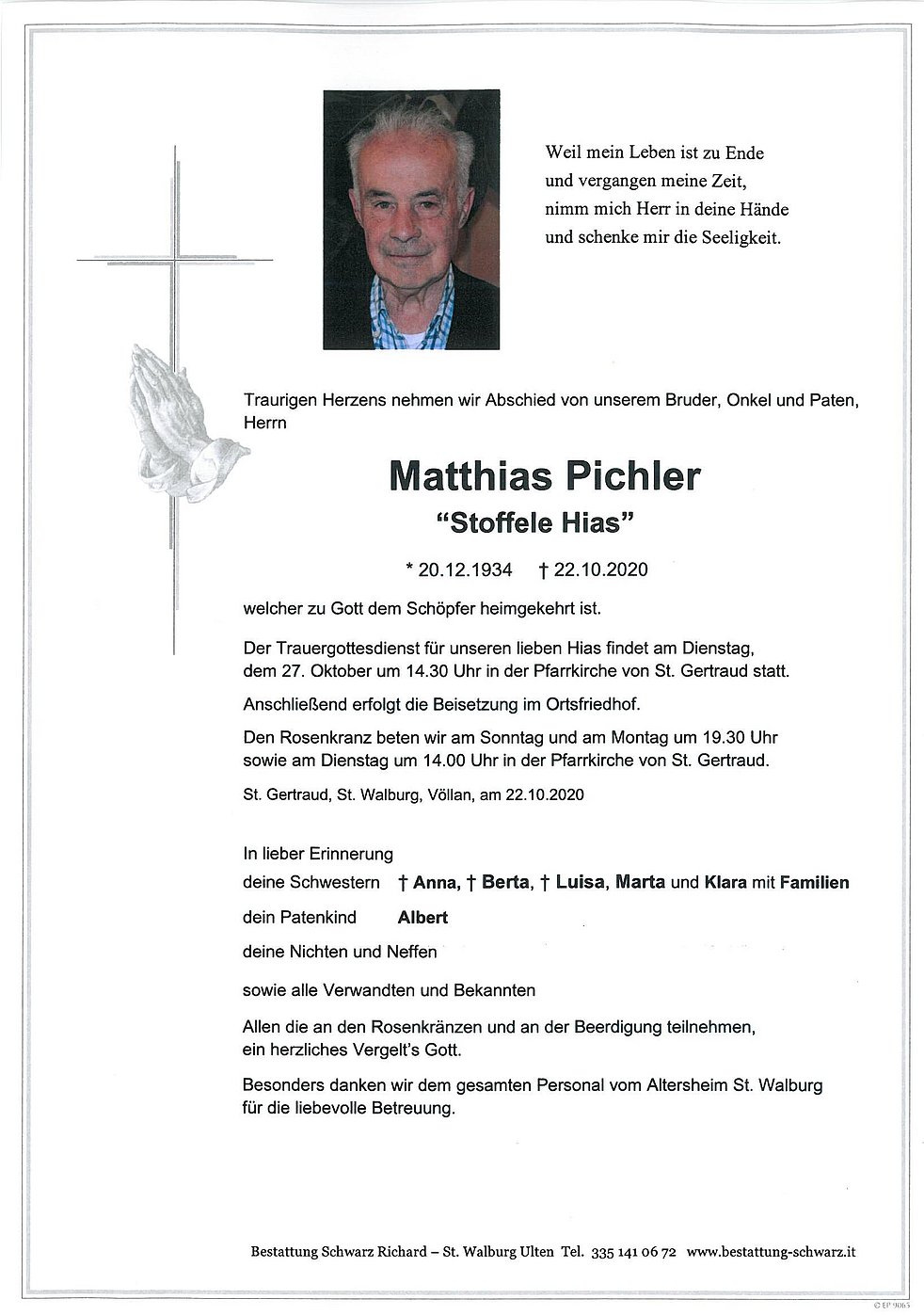 Begräbnisgottesdienst: 27.10. - 14:30 Uhr Pfarrkirche St. Gertraud