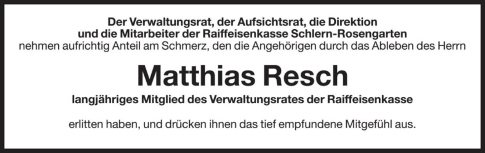 Die Urnenbeisetzung erfolgt im engsten Familienkreis im Friedhof von St. Vigil/Enneberg.