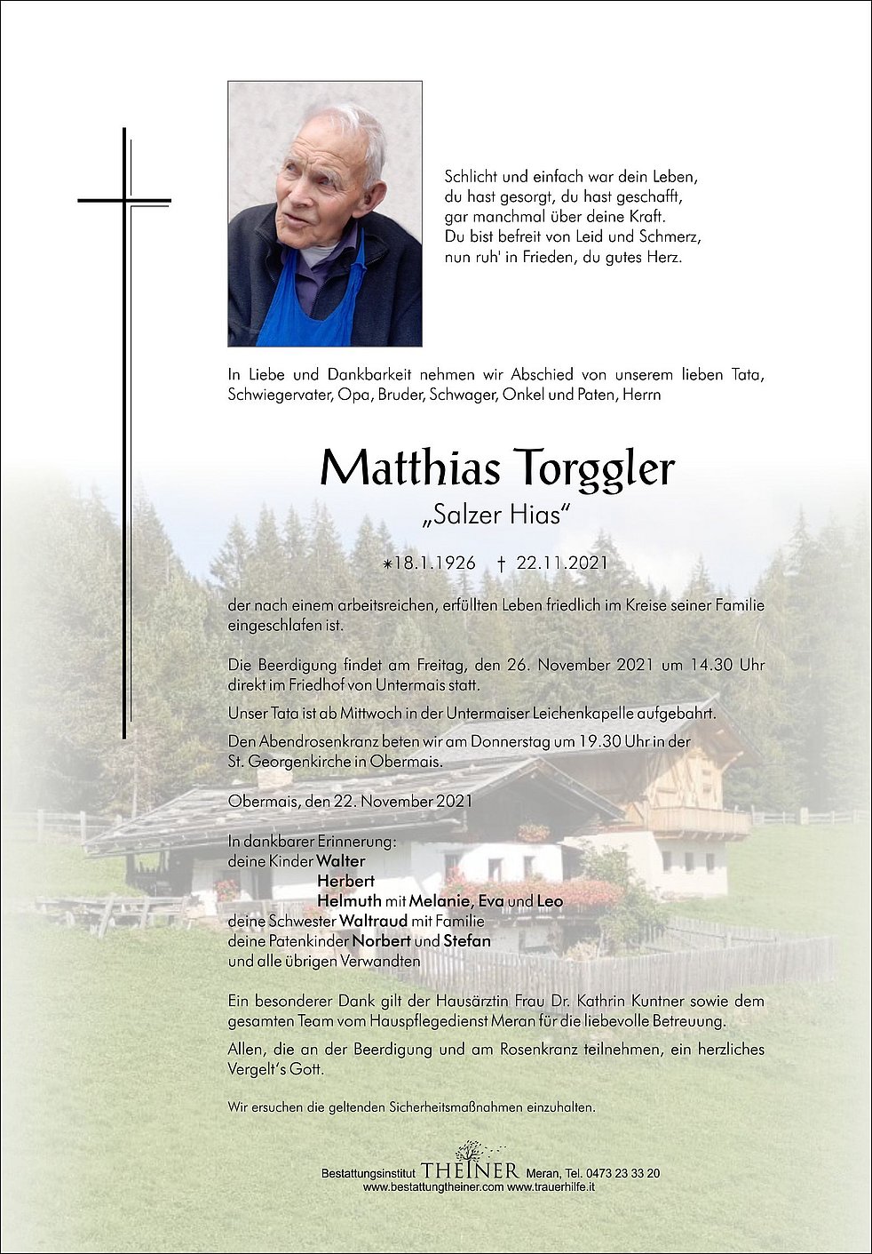 Die Beerdigung findet am Freitag, den 26. November 2021 um 14.30 Uhr direkt im Friedhof von Untermais statt.