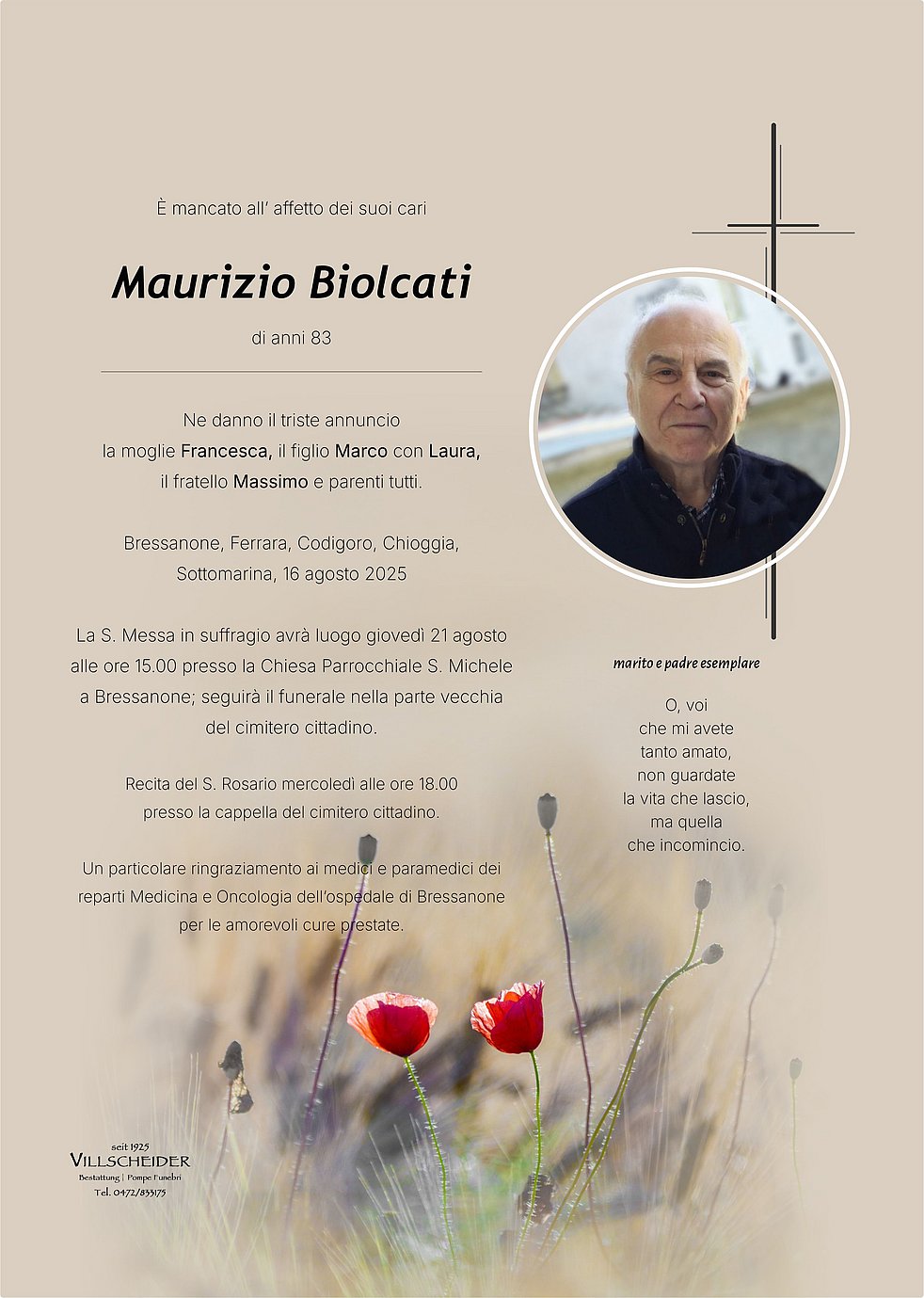 Trauerfeier: 21.08. - 15:00 Uhr Brixen | Bressanone