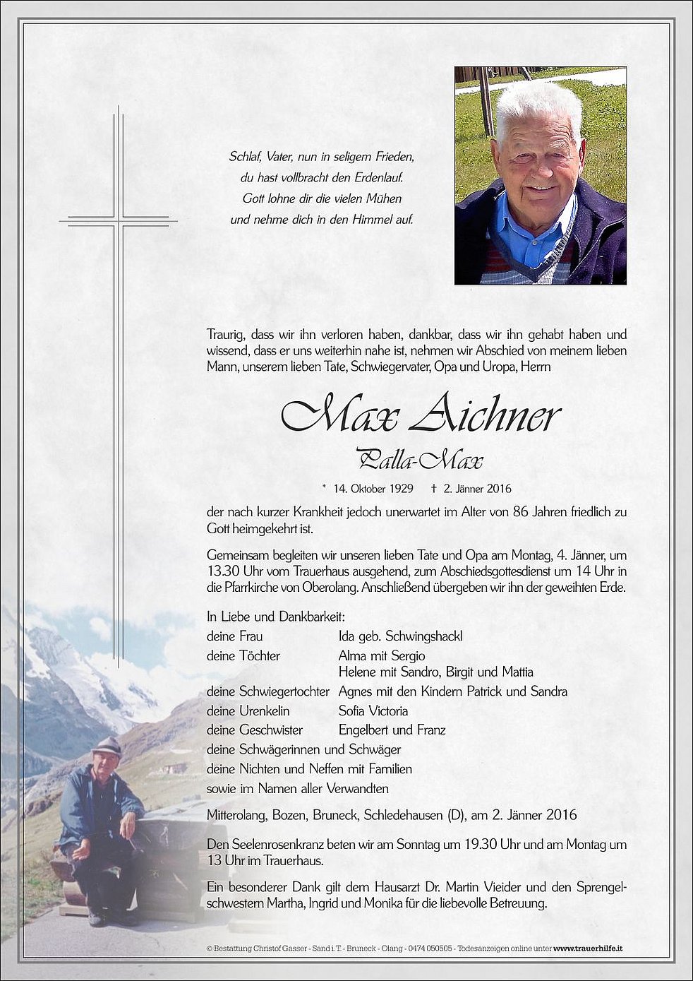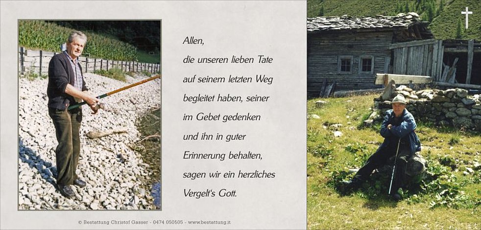 Ein besonderer Dank gilt dem Hausarzt Dr. Martin Vieider und den Sprengel-schwestern Martha, Ingrid und Monika für die liebevolle Betreuung.