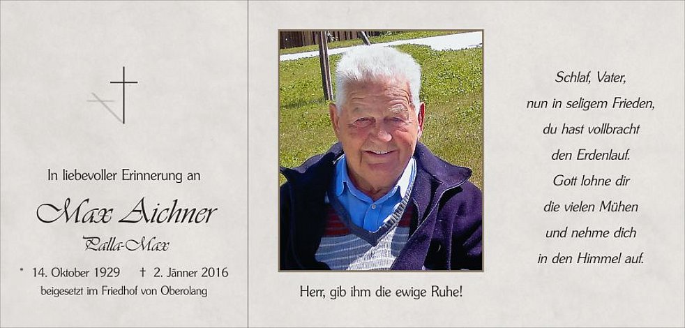 Gemeinsam begleiten wir unseren lieben Tate und Opa am Montag, 4. Jänner, um 13.30 Uhr vom Trauerhaus ausgehend, zum Abschiedsgottesdienst um 14 Uhr in die Pfarrkirche von Oberolang. Anschließend übergeben wir ihn der geweihten Erde.