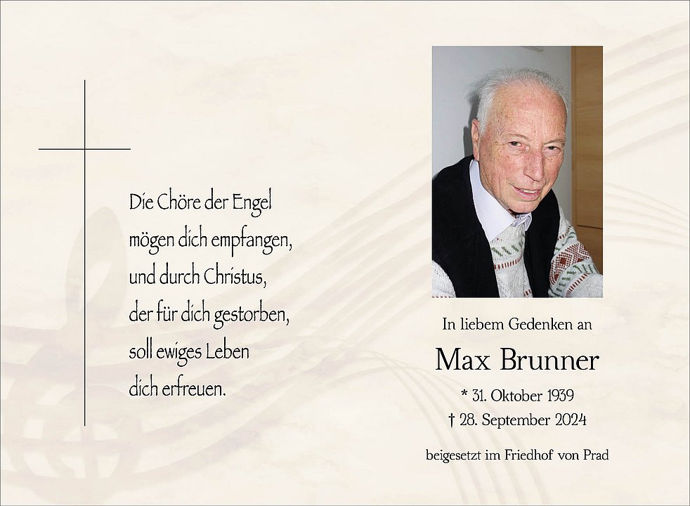 Lieber Max, zahlreiche Proben, Auftritte und Feierlichkeiten hast du mit uns zur Ehre Gottes musikalisch mitgestaltet. Durch deine feine, ausgebildete Tenorstimme, durch deine ausgeprägte Musikalität und durch deine absolte Treffsicherheit hast du unseren Chor wertvoll bereichert. Du hinterlässt eine große Lücke, Vergelt's Gott für alles.