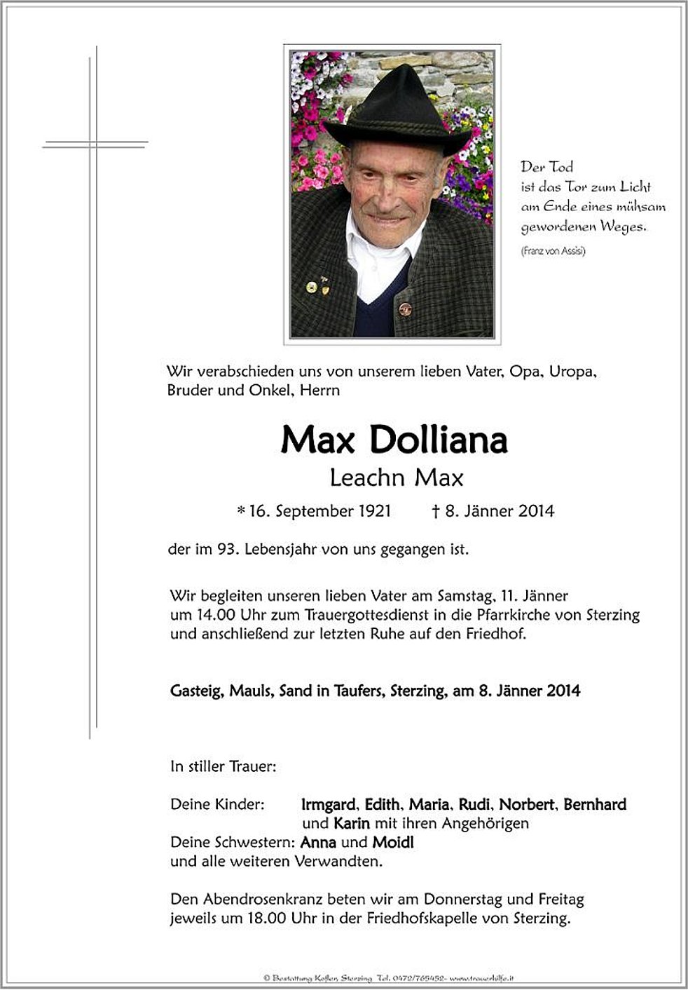 Wir begleiten unseren lieben Vater am Samstag, 11. Jänner