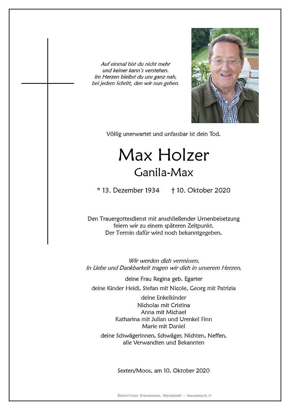 Den Trauergottesdienst mit anschließender Urnenbeisetzung feiern wir zu einem späteren Zeitpunkt. Der Termin dafür wird noch bekanntgegeben.