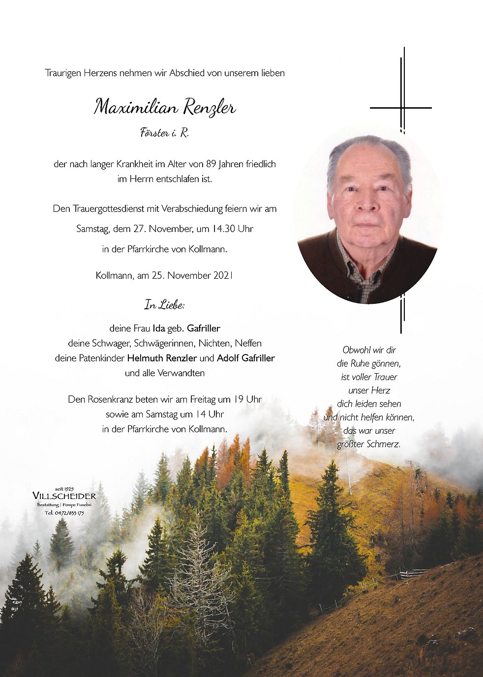 Moechte euch auf diesem Wege mein Mitgefühl unvermittelt zum Heimweg eures Maximilian. War in Toblach sein Nachfolger und habe ihn als korrekten Foerster in Erinnerung. Die Aufenthalte in deiner Toergeleheimat anlässlich diverser Bozen-Fahrten bleiben gut in Erinnerung.