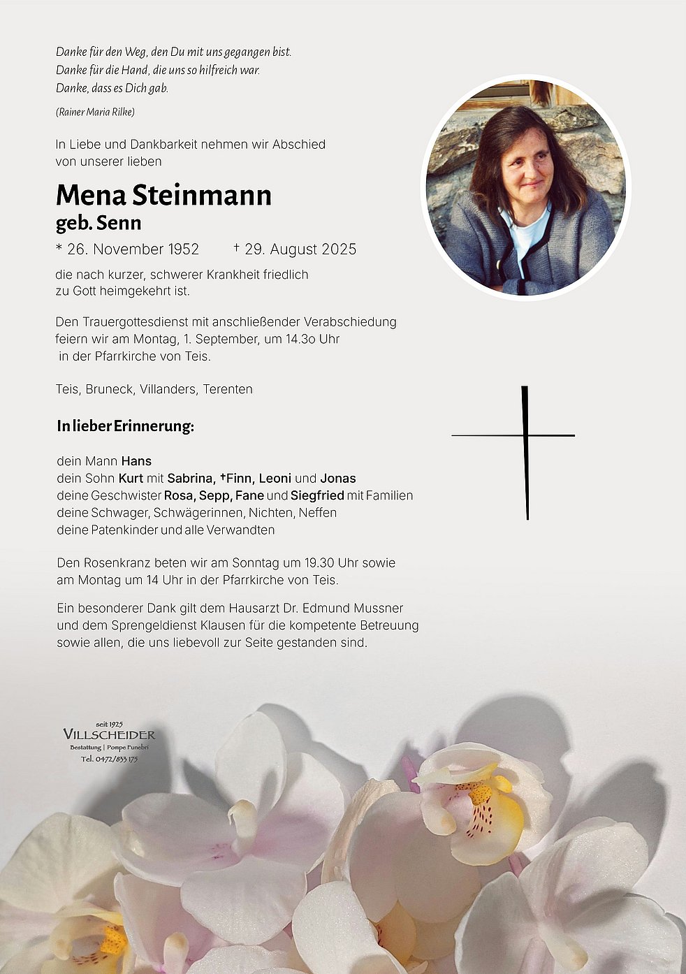 Trauerfeier: 01.09. - 14:30 Uhr Teis
